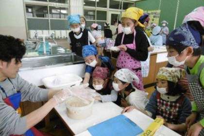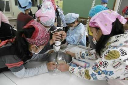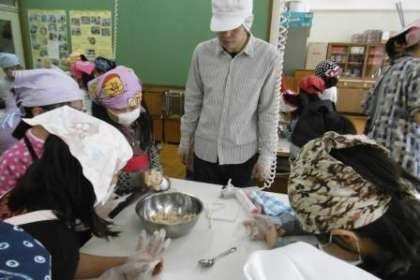 地域のお味噌屋さんに来ていただき,5年生がみそ作りを体験しました。今日炊いていただいたホクホクの大豆を機械や手でつぶし,お店特製の麹と塩をまぜて作りました。みんな話をよく聞いて,楽しく手際よく作っていました。