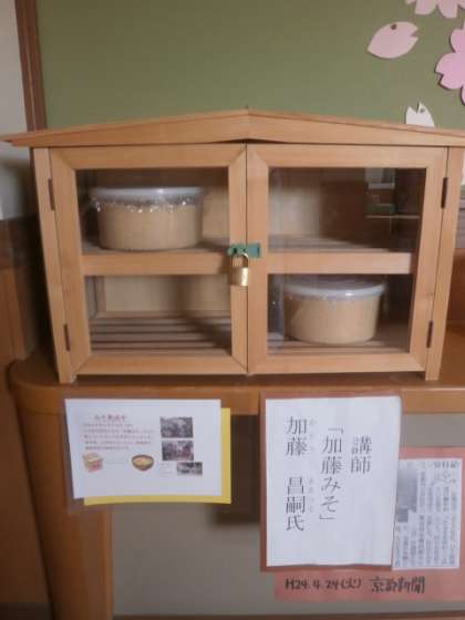 1年間,給食室前のお味噌のお家においてあるので,色の変化など見てくださいね。