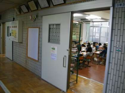 土曜日に一日がかりで工事をしていただき,3年3組の扉が新しくなりました。