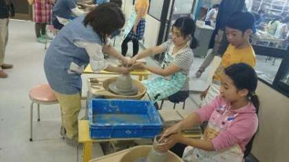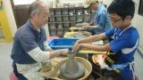 陶磁器センターでは,各テーブルでの作品作りの他に,ろくろ体験もしました。ろくろを回しながらつくるのは難しかったですが,教えていただいたり手をそえていただきながら,ろくろを体験しました。