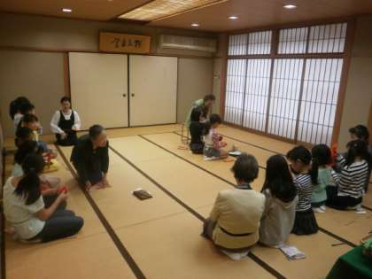 12日(火)に,今年度最初の茶道部を行いました。今年度は14名の児童が入部し活動していきます。この日は,席入りの仕方や袱紗捌き,お茶菓子のいただき方,お茶のいただき方などを地域の先生方に丁寧にご指導いただきました。