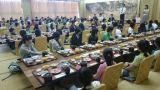校長先生のお話を聞いた後,担当の子どもたちが「いただきます」の挨拶をして朝食をいただきました。これからの活動に向けて,しっかりと食べています。
