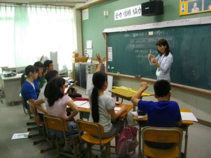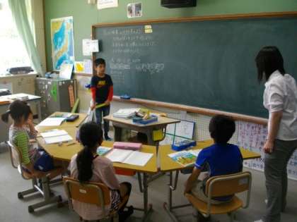 4年生の算数では,自分でたてた計算式の考え方を黒板を使って説明していました。6年生の理科では,光合成ででんぷんができたかどうかを確かめるために,どんな方法があるのか,2クラス合同で話し合っていました。
