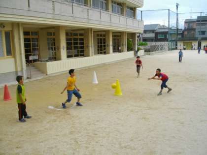 5年生が,ハンドベースボールをしています。