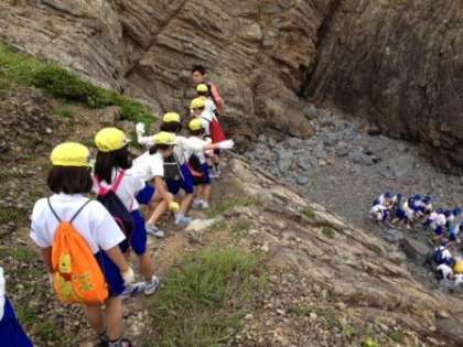 みさきの家から歩いて,大磯浜へ向かいました。足元や周りを見て,浜を安全に歩きました。