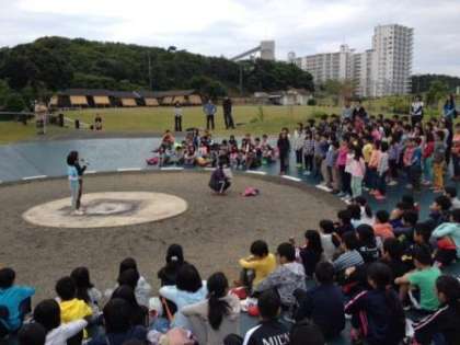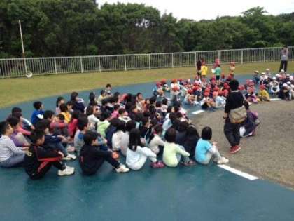 今日の朝の集いは,同じ期間みさきの家で活動している小学校が合同で行いました。学校紹介をしあったり,学校の旗をあげたりしました。