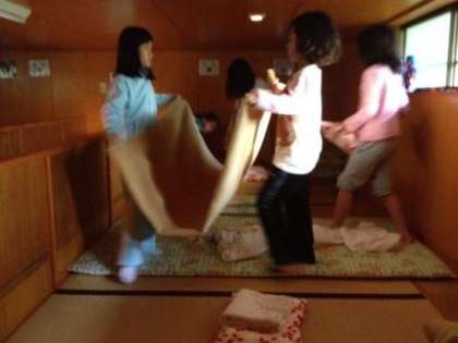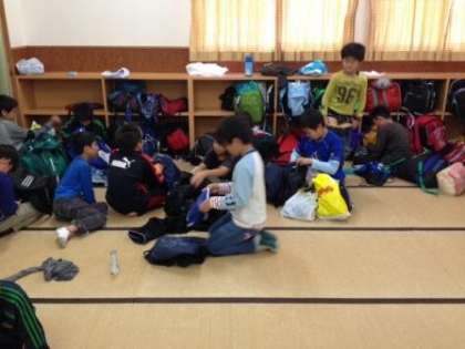 気持ちのよい朝です。6時に起床して,ふとんやシーツをたたみました。眠たそうな子どもたちもいますが,きちんと荷物を整理しています。