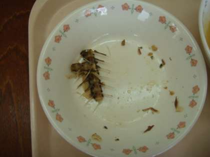 1年生にとっては,はじめての煮魚でした。3クラスともに「魚の上手な食べ方」を話しました。1年生でも,下記の写真のようにとってもきれいに食べられる児童もいました。お家でも魚が上手にたべられるよう,食事のときにお声かけ等よろしくお願いします。