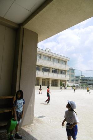 熱中症対策で,ピロティに設置しているミストを使い始めました。子どもたちは気持ちよさそうにミストを浴びています。