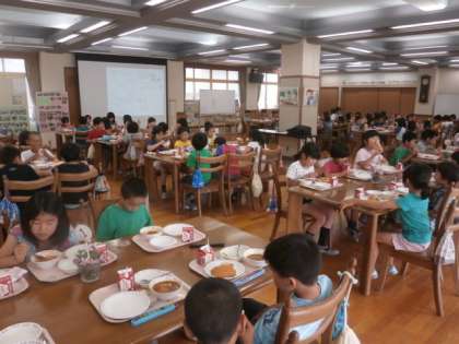 交流給食を通して,学校生活を豊かにし,明るい社会性と協同の精神を養うことをねらいの一つとしています。