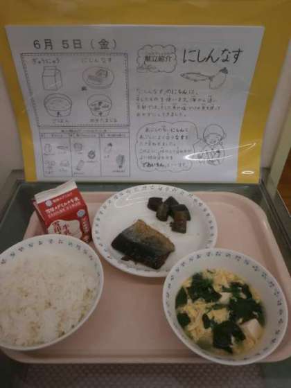 「ぼくは今日のこんだてに入っていたにしんなすのなすは,今まで苦手で食べることが遅くなっていたけれど,今日はなぜかおいしく思いました。」(5年児童)