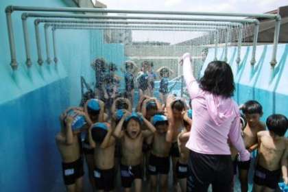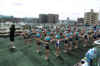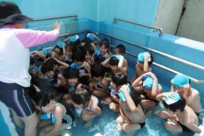 みんなで体操をして,腰洗い・シャワーをあびた後に,プールに入りました。