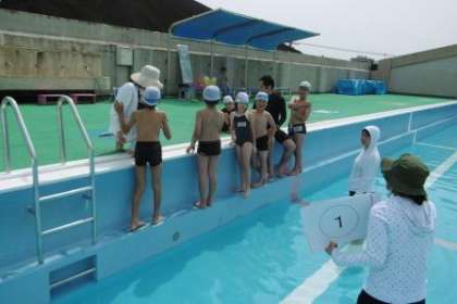 とても暖かい天気の中,5時間目にわかたけ学級で水なれの学習を行いました。着がえの仕方やプールでのルールなどをしっかりと確認しながら,楽しくプールで活動しました。