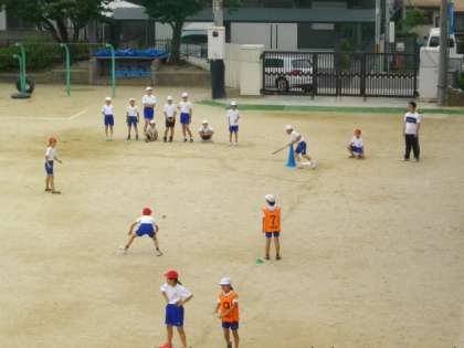 5年生が体育でベースボールに取り組んでいます。