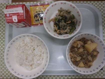 11日(木)の献立は,「麦ごはん,牛乳,肉じゃが,切り干し大根の煮つけ,黒大豆」でした。長崎県産の新じゃがで甘みがあり,おいしい芋でした。児童の感想を紹介します。