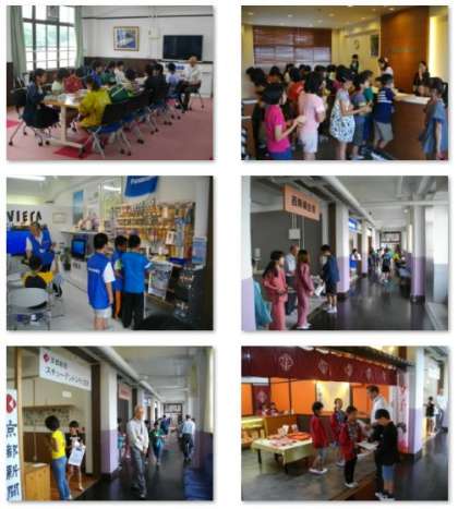 スチューデントシティ学習は,生き方探究館の3階に,銀行,商店,新聞社,区役所等(13ブース)からなる「街」を再現し,その「街」で子どもたちは学校での事前学習を基に,消費者役と企業に勤める会社員役,それぞれの立場での役割を担い,体験学習を通して,社会の働きや経済の仕組み,社会と自分との関わりなどを学びます。※スチューデントシティは,公益社団法人ジュニア・アチーブメント日本のプログラムです。