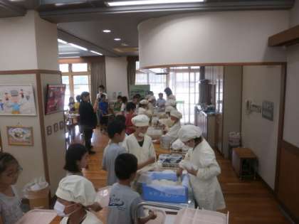 学習後,4年生全員で交流給食を行いました。配膳も後片付けも手早く上手にできました。