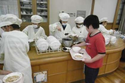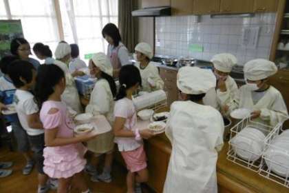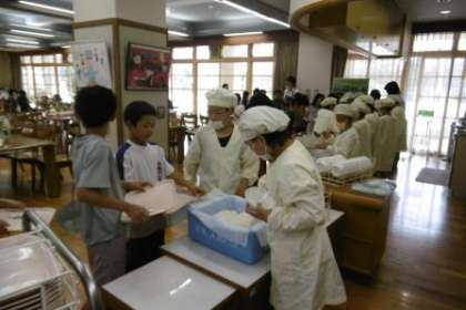 今週は,4年生がランチルーム給食を行っています。カウンターや配膳台を使って,上手に配膳したり,準備をしたりしていました。
