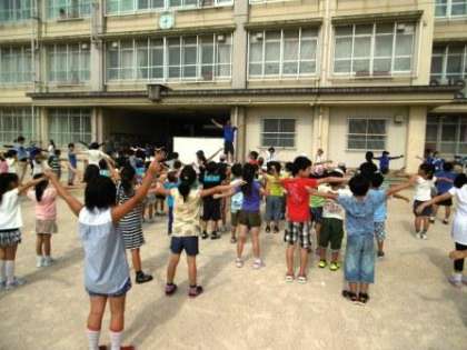 夏休みが始まりました。今日は,PTAの方がラジオ体操を行ってくださいました。サマースクール(学習会)の前に,たくさんの子どもたちが参加してくれました。体を動かして,さわやかに朝をむかえました。