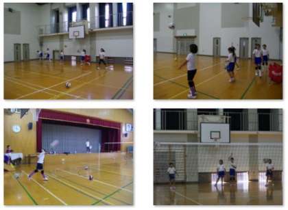 バレーボール部が活動中です。今日は最初にサーブの練習をしました。