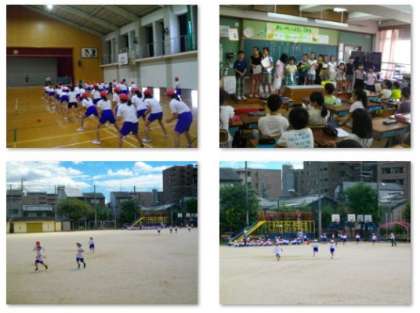 運動会に向けて,50mのタイムを測ったり,団体演技の練習をはじめたりしています。また,夏休み中に取り組んだ自由研究作品の発表会をしているクラスもあります。