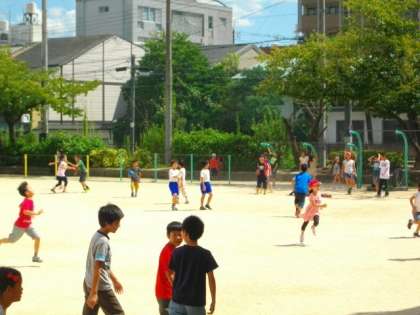 昼休みに5年生がハンドベースボールをしています。一つ一つのプレーに,大きな歓声が聞こえてきます。ミスをしても決して誰かを責めることなく「次,がんばろう!」と声を掛け合っているところが5年生のいいところです。