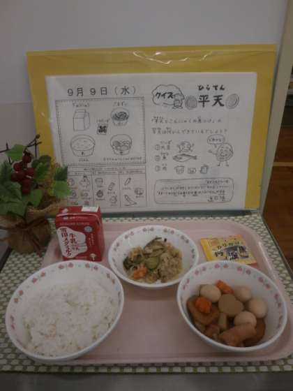 9日(水)平天とこんにゃくの煮つけ