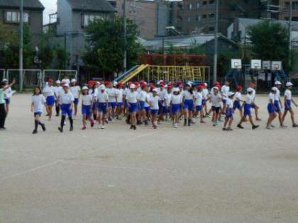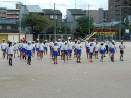 雨があがったので,外で練習しました。隊形移動の練習をがんばっています。