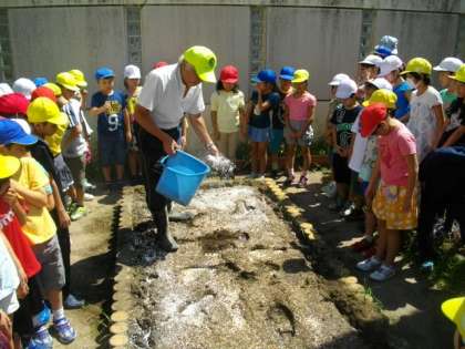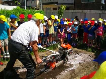 上鳥羽から村田さんをお迎えし,九条ネギの学習を進めています。今日は,土づくりについて学習しました。丁寧に肥料をまき,耕運機で土を耕して行く様子を見学しました。