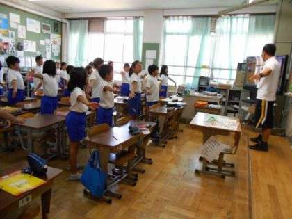 運動会に向けて,学年の競技・演技以外にも練習をがんばっています。教室では,運動会最初のプログラム「にじょっこダンス体操」の練習をしています。