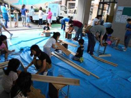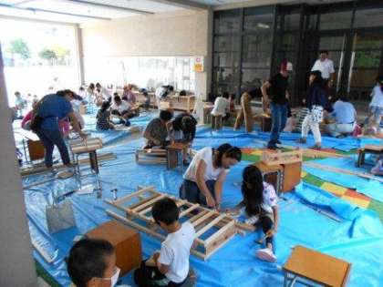 1・2・3年生対象の親子木工教室が始まりました。京都府建築工業協同組合「葭塾」の方々を講師にお迎えして,道具の使い方などを教わりながら,親子やきょうだいで木工を楽しんでいます。あと少しで完成です。