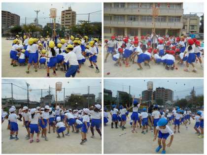 今日から全校練習が始まりました。今日は,入場行進・座席への入退場・開会式・閉会式の練習と,全校種目の玉入れ・リレーを行いました。曇り空の涼しい天気の中で,みんな練習をがんばりました。