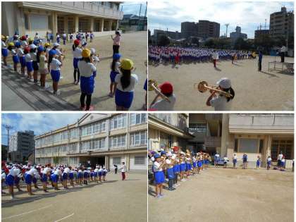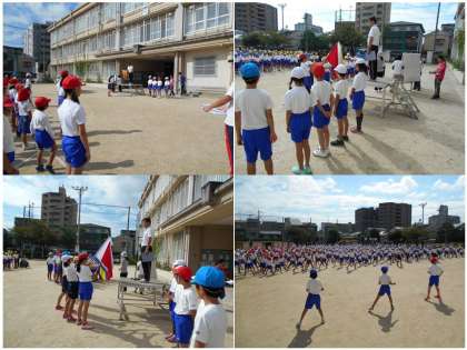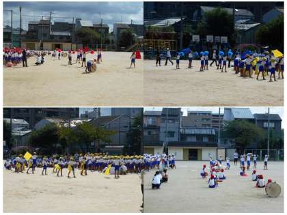 明日の運動会を前に,最後の全校練習を行いました。入場行進,開閉会式,全校体操,応援合戦などの練習をしました。
