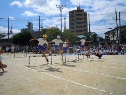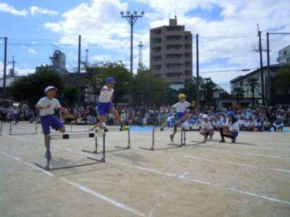 ハードルのとびこし方に気をつけながら,50mを走りぬきました。