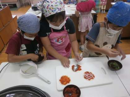 「いつもだったら,おかあさんがつくるのに,きょうはじぶんたちでつくってたべることができうれしかったです。わけは、トマトソースがおいしかったからです。おいしかったのでまたたべたいです。」