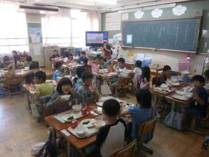 1年生では,給食で始めて納豆がでたと喜んでいる様子でした。苦手な子どもたちも,周りの子がおいしいと言って食べているためか,残さず食べていました。