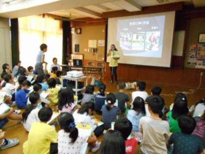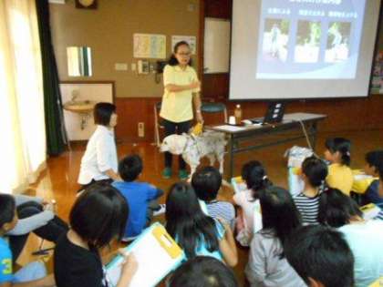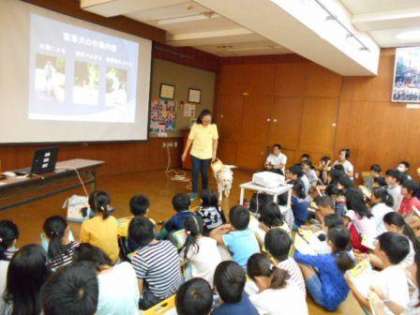 総合の学習で,盲導犬についての話を聞きました。盲導犬がどんな仕事をしているか,どんな性格の犬が盲導犬に向いているかなど,わかりやすく楽しくお話ししてくださいました。子どもたちも興味津々で,たくさん質問していました。