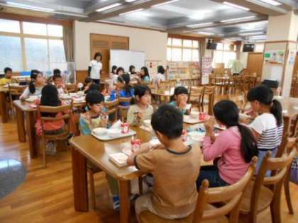 今日は,草の芽学級がランチルームで給食を食べました。楽しく会話しながら,おいしくいただきました。