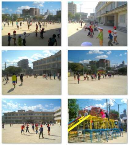 いいお天気です。たくさんの子どもたちが外で元気よく遊んでいます。