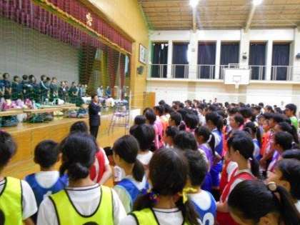 今日は,本校を会場にして全市バレーボール交流会を行いました。開会式の後は,試合を前に練習をしました。