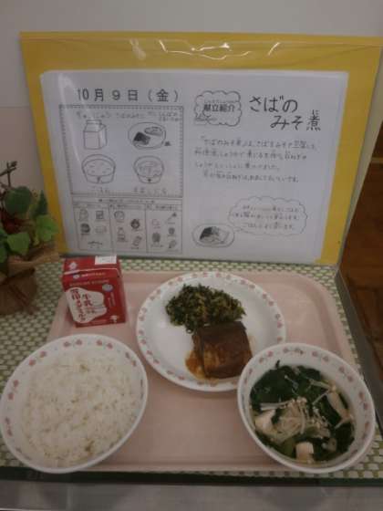 「さばのみそにがおいしかったです。ごはんといっしょに食べておいしかったです。わたしは,えのきが好きなので,すまし汁にえのきが入っていてとてもおいしかったです。これからもおいしい給食を作ってください。」(5年児童)