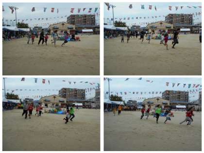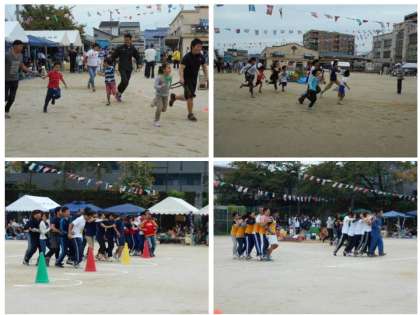 たくさんの子どもたちが親子競技に参加していました。(於:元待賢小学校運動場)