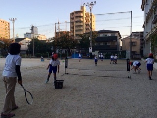 テニス部が練習をしています。