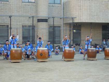 はっぴ姿も凛々しい子どもたちです。力強い太鼓の音が響いていました。