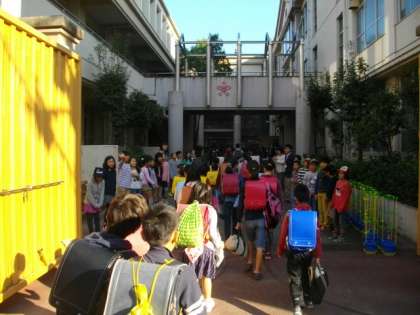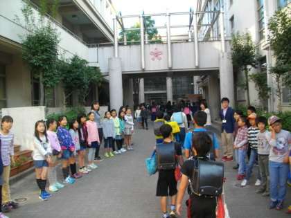 今日は4年2組のお友達が校門前に立って,声をかけてくれました。