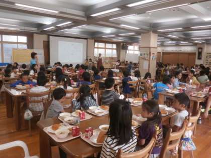 100名以上いる中でのあいさつに緊張している様子でしたが,とてもハキハキと元気よく「いただきます」のあいさつをしていました。