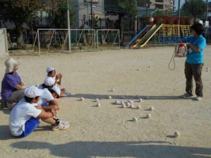 明日の上京支部合同運動会に向けて,動く玉入れの練習をしました。