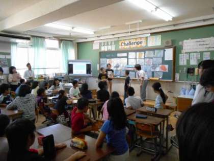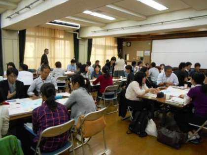外国語活動の公開授業を行いました。授業の後は研究会を行いました。