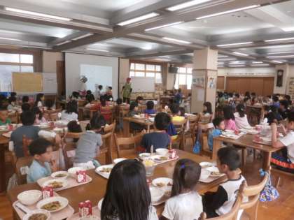 21日(水)に4−1と1−2と1−3のなかよし給食を行いました。