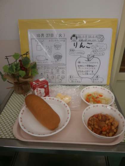 「リンゴがあまくておいしかったです。スチコンのやさいのホットマリネもおいしかったです。」(2年児童)